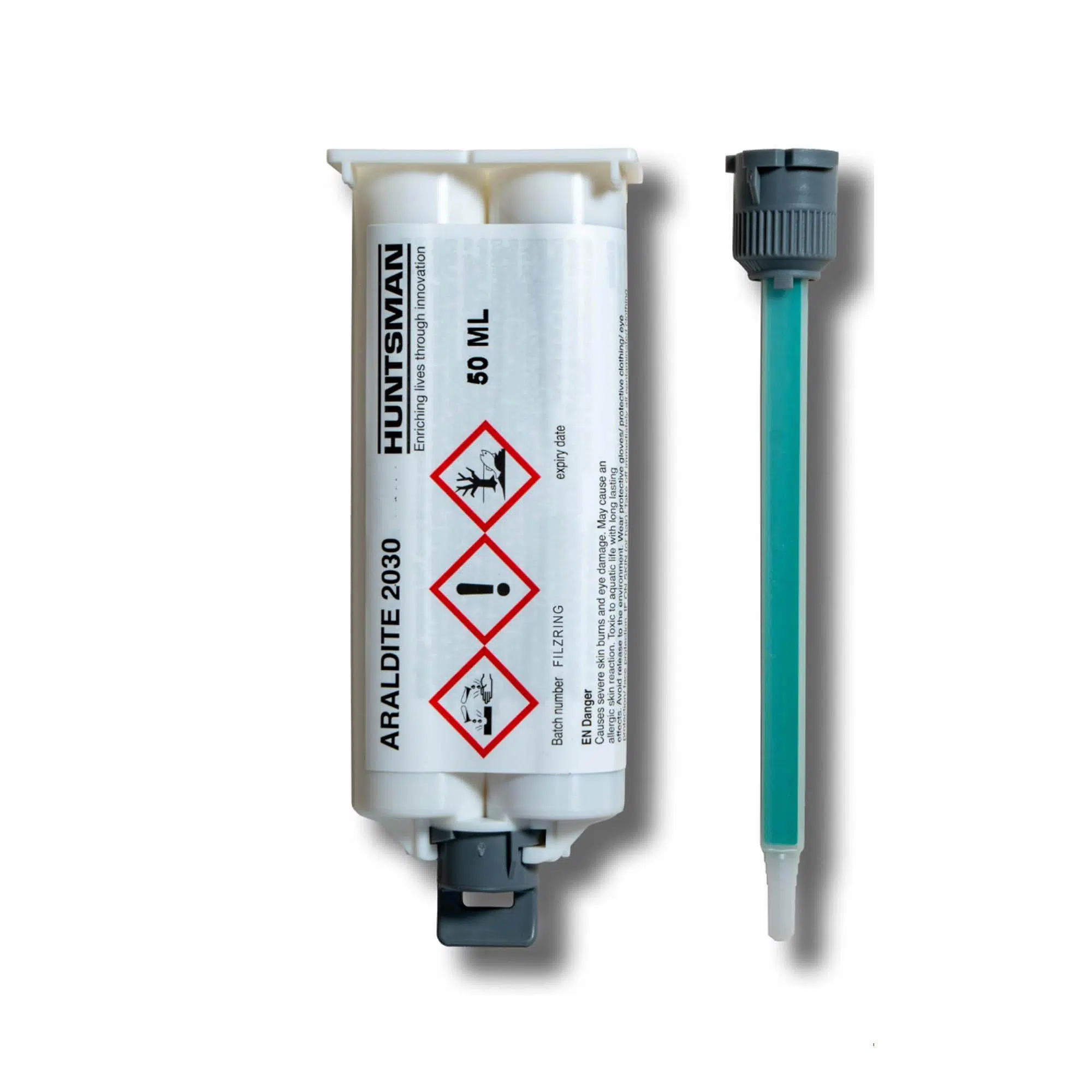 Araldite 2030 is a multifunctional 2-component epoxy adhesive that cures at room temperature. The adhesive can be easily processed from a double syringe, which ensures that the resin and hardener are always dosed in equal parts.
